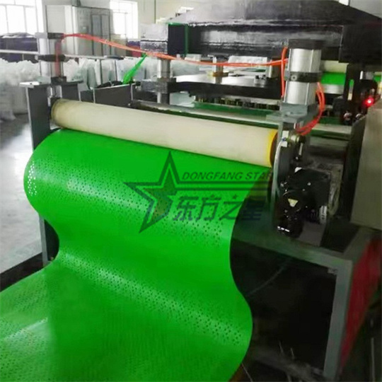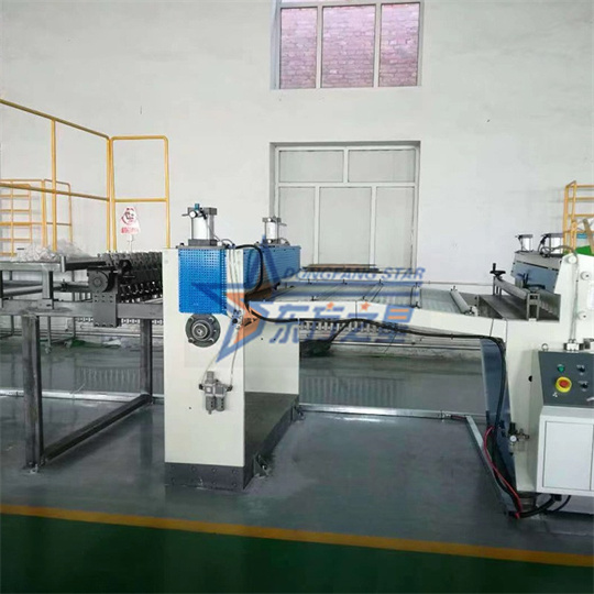 Производствената линия на HDPE Geogrid екструдер се използва за производство на геоклетки. Първата стъпка на този продукт е производството на листове, след което листовете се режат онлайн и след това пластмасовите листове се свързват чрез