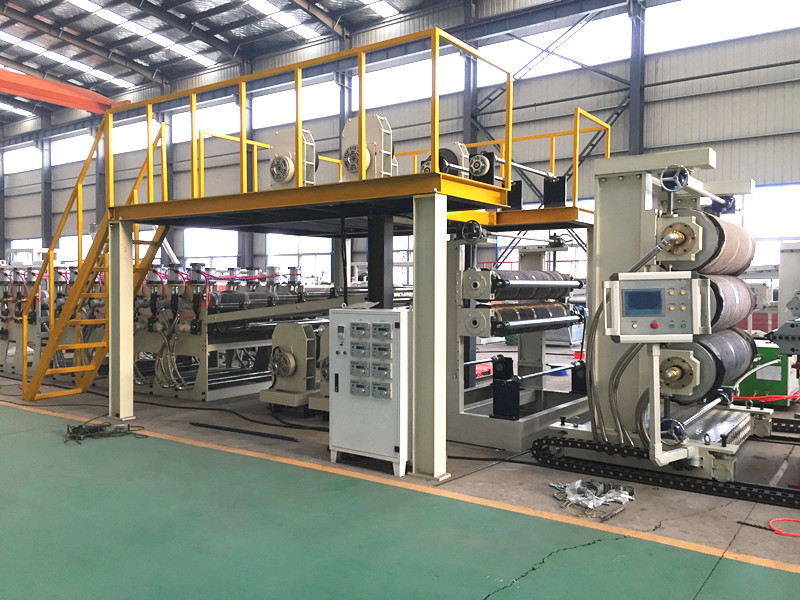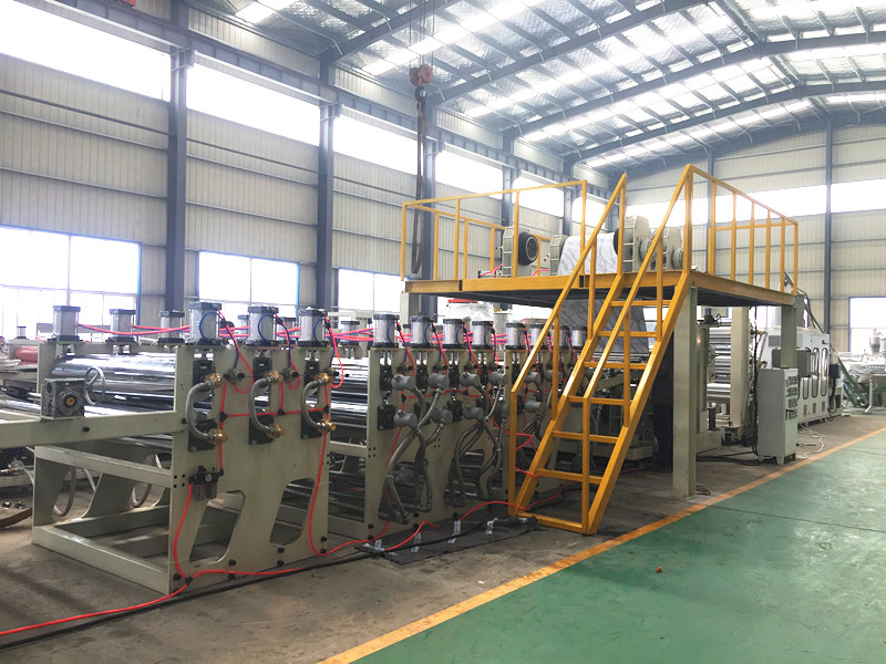 Qingdao EASTSTAR е завършенPE линия за производство на алуминиево-пластмасови панелисе състои от едношнеков екструдер SJ150×33, композитна матрица, триролков каландър, двустранна алуминиева намотка за развиване, двуролков термичен ламинатор, осемролков термичен ламинатор, шестролкова охлаждаща направляваща ролка, ламинатор, четириролков изтеглящ механизъм и нож. PLC система позволява интелигентно управление на цялата линия.