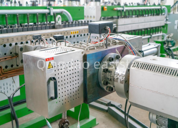 Системата за екструдиране на ядрото на товаПроизводствена линия за PP кухи панеливъзприема специален дизайн на винта с диаметър на винта от 120 mm и съотношение дължина към диаметър от 36:1, специално оптимизиран за високите характеристики на пълнене на PP суровини и рециклирани материали. Theекструдере оборудван с главен двигател 132KW, постигащ прецизно регулиране на скоростта чрез честотен преобразувател INVT, с максимална скорост от 90rpm. Винтът и цевта наPP панелно оборудване с отворена клеткаса изработени от материал 38CrMoAiA с двойна сплавна износоустойчива обработка и дълбочина на азотиращия слой от 0,5-0,7 mm, осигуряваща устойчивост на износване и експлоатационен живот при обработка на суровини с високо съдържание на пълнеж.