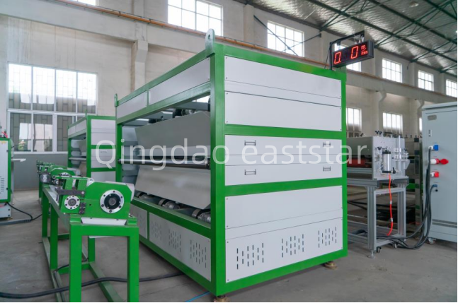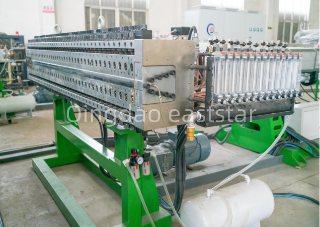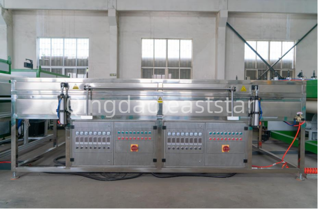 Theмухълсистема наПроизводствена линия за решетъчни панели с отворена клетка от PPе изработен от висококачествена стоманена форма, с ширина на отвора на матрицата от 2200 mm, способен да произвежда решетъчни панели с отворена клетка с дебелина 2-6 mm. Формата е оборудвана с 11-зонова отоплителна система с отоплителна мощност от 4KW/зона, използваща вътрешно отопление за осигуряване на равномерна температура. Платформата за вакуумно оформяне и охлаждане приема комбиниран дизайн на двустепенно вакуумно охлаждане и оформяне плюс едностепенно охлаждане и оформяне, оборудвана с вакуумна помпа от 15 KW, за да се осигури стабилно формоване на листа. Тези професионални конфигурации гарантират, че продуктите, произведени от производствената линия за мрежови панели с отворени клетки, имат еднаква мрежова структура и стабилна точност на размерите.