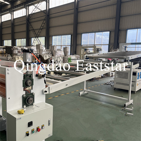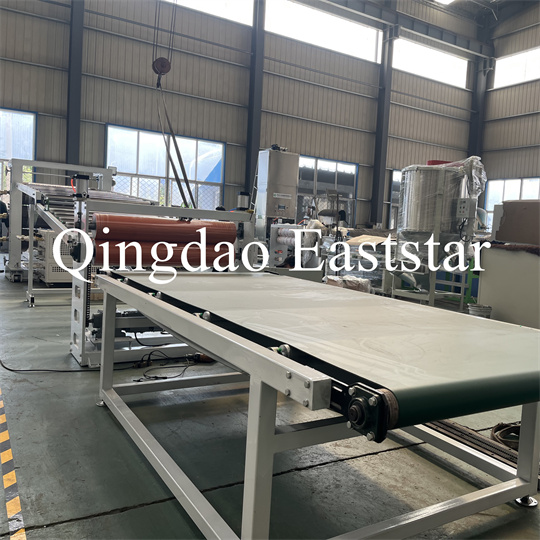 скоба, машина за теглене с гумени ролки, машина за срязване и устройство за транспортна лента. Оборудване за екструдер с PVC противоплъзгаща плоча, ширина на продукта