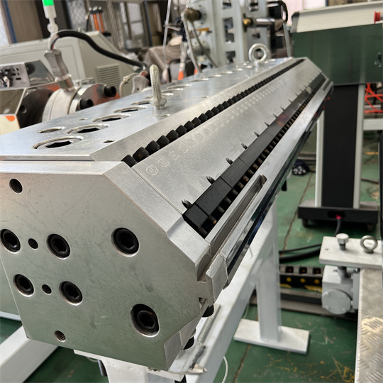 Оборудване за екструдер за PVC осветителни плоскости: Оборудването се състои главно от двушнеков екструдер, плоча, каландр с три ролки, охлаждаща скоба, гумена ролкова теглителна машина, рязане